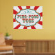 Carnival or Circus Ping Pong Toss game sign with red and white stripe.
