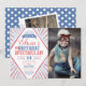 Vintage carnival, circus themed "birthday spectacular" party invitation featuring typography and geometric shapes with photo. Comes with an additional photo and pattern on the back. Customise the age on the flag accordingly. Matching thank you card is available in our shop.