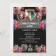 A vibrant, striking and dazzling night scene of a trapeze artist about to start her routine; a freak with tattoos and roses on his head and a ringmaster wearing a top hat and dashing jacket all resting along the top edge of a rectangular inlay set on black. Colourful exploding fireworks appear around them and a row of people donning their festive carnival outfits line the bottom edge of the invite. There are editable white text templates above them for your custom wording. This luxurious, elegant and upmarket watercolor ai design is ideal for a festival, carnival or circus celebration whether it be a retirement, birthday, halloween or a sit down dinner party. This is suited to both teens and adults