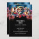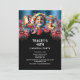 A vibrant, striking and dazzling night scene of a boy wearing a colourful wig and face mask set between two gorgeous ladies wearing colourful fancy dress costumes and wigs. Their makeup is done and they are set for showtime! These watercolor realistic 3D AI graphics are set against a black and faux shimmer blue background that makes them pop. Exploding colourful fireworks can be seen on either side of the invitation and editable white templates appear below the graphic which may be personalised to suit your special occasion. This luxurious, elegant and upmarket invite is ideal for a festival, carnival or circus celebration whether it be a retirement, birthday, halloween or a sit down dinner party. This is suited to both teens and adults