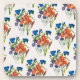 Old-fashioned botanical illustration of spiderwort and daylily in blue, purple and orange