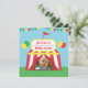 Kids will be excited to receive this bright and cheerful birthday party invitation that has a red and white carnival tent with lots of colourful bunting flags and balloons hanging around. The tent has a signboard with stars to feature the birthday child's name and a peek into the tent with space for personalisation of photo of the birthday child! To shift or resize photo, go to customisation mode. Perfect for both birthday boys and girls. This is also perfect for schools that are holding a school carnival. Personalise easily with your party details on the reverse page of the invite which has a red and white stripes pattern background to match the carnival tent.