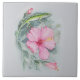 Original watercolor painting by Sandra Gale featuring a pink Hibiscus flower with a green anole lizard perched on top. These little lizards are found on the east coast in NC, SC, and Florida among other Southern states. Great gift for adults, kids and gardeners or reptile lovers!