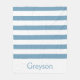 Sweet Carolina Blue and crisp white stripes that you can personalise with your choice of name or special text. Matching accessories are available!