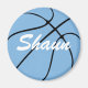 Carolina Blue / Light Blue Basketball Custom Text Round Magnet: A cool basketball decoration for the kitchen fridge or any other metal surface. Type any text - player name, team name, etc. - in the custom text box to personalise it. Makes a fun gift idea for basketball players and fans with Carolina blue team colours!