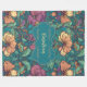 A lively floral pattern with big peach and violet blooms intertwined with a colourful turquoise and blue vine background.