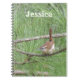 This notebook features a little Carolina Wren with a mouthful of nesting material, on the lookout for a new home. Personalize with your name.
