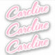 Caroline name in cursive script font in pretty pink x3. Three copies of name.