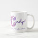 Decorated hand drawn letter with your own name beginning with C and name meaning mug. Reads Carolyn Song of joy. Strong, free and blessed or you change the meaning to your own. Pretty heart and flower capital C doodled typographic design featuring hearts and flowers and the words in pink and purple. © Unique art and design by Sarah Trett. www.sarahtrett.com for www.mylittleeden.com on zazzle