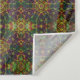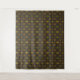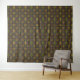 An intricate geometric pattern features repeating motifs with earthy tones of brown, green, and gold. The symmetrical arrangement creates a kaleidoscopic effect that draws the eye across the design.