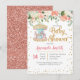 Pink Carousel Horse Baby Shower Card with beautiful floral and gold confetti.