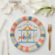 Carousel Birthday plates This carousel circus birthday plates combines whimsical charm with a polished, cohesive design. The card is beautifully integrated, giving a seamless, interactive experience. The card has a vintage-inspired carousel design, with vibrant, playful colours like red, yellow, and turquoise. The carousel’s whimsical horses are illustrated in soft, dreamy pastel tones, creating a nostalgic, magical atmosphere.