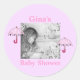 Round Stickers featuring Carousel Dreams cd cover art, grey colour, with Pink Umbrella design, graphic licensed by Graphics Factory. Great Baby Shower Favours! Customisable!