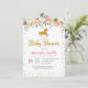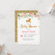 Carousel Horse Baby Shower invitation with beautiful peach floral and gold confetti.