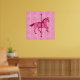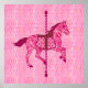 Mixed media digital graphic of a classic carousel horse, in mixed patterns, against an arabesque tiled background - Deep Fuchsia and pale pink, accented with burgundy
