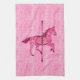 Mixed media digital graphic of a classic carousel horse, in mixed patterns, against an arabesque tiled background - Deep Fuchsia and pale pink, accented with burgundy