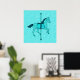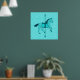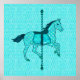 Mixed media digital graphic of a classic carousel horse, in mixed patterns, against an arabesque tiled background - Turquoise / Peacock and aqua, accented with teal