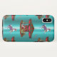 A retro, carnival themed iPhone X case featuring a lovely pattern of vintage carousel horses and merry go rounds, all set on a colourful blue background.