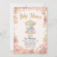 Carousel Baby Shower Invitation with pink and gold glitter confetti