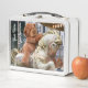 This is a standard metal lunchbox that appears to work just fine. We designed this box ourselves with an uploaded photo and custom text on the front and back. It looks absolutely beautiful except the front of the lunchbox is not centered like it shows in the photo. The print borders don't align with the inset flat part of the box where the preview photo online showed it perfectly centered in there. The back looks nice and centered though.