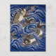 Carp in Waves Japanese Koi Fish Silk Tapestry Art, Postcard