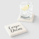 Carpe Diem black and white script typography Stone Coaster. Custom colour drink coasters with personalised quote or text. Meaning; seize the day. Stylish hand lettering design. Stylish Birthday gift idea for friends, family, coworker, colleague, boss, employee etc. Great for office, wedding party or home. marble, limestone, sandstone, travertine options.