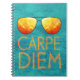carpe diem, sieze the day, phrase, words, text, typography, words, sunglasses, aviators, palm trees, summer, beach, beachy, vacation, paradise, young, fun, blue, yellow, orange, teal, aqua