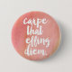 Get it! Seize the day with this button featuring a fun brushstroke font on a peachy pink watercolor background. Coordinating items available in our shop!