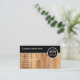 Carpenter business card design with simulated wood panelling background printed on the front and great text layout you can customise to suit your carpentry business. Designed for a cabinet maker, woodworker, or kitchen and bath remodeling.