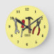 The clock did not take as long to arrive as I thought it might and was extremely well packaged. I didn't do the measurements so I didn't realize it is a little smaller than the average clock but that does not matter (just make sure you check if that's important to you).It is really nifty! It seems very solid and well made not flimsy at all. It has been going well and has kept good time in its few weeks on my wall. Nice product. Gets noticed too! Nicer in real life than the picture but true to the picture