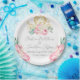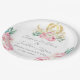 This custom wedding plate has a fairy tale theme with pink and white flowers. Watercolor white roses and pink peonies accent the bottom corners. A gold Cinderella princess carriage is placed at the top.