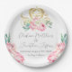 Carriage and Pink Flowers Fairy Tale Wedding Paper Plate