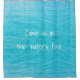 Carribean blue water with white text. The text is in a modern font and reads: Come in the water's fine. Fun addition to any bathroom.