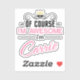 Of Course I'm Awesome I'm Carrie in mixed black and pink sans and decorative cursive font lettering with scroll embellishments and topped a golden crown.