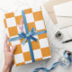 Carrot and White Chequered Chequerboard Vintage Wrapping Paper