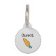 I love this tag - it has a cute funky design and matches my dog's purple collar. It also came with a rubber band to put around it - I originally thought it was just to protect the tag, but it actually glows in the dark too! Which I think is very cool. especially if you're walking your dog in the dark. The printing is awesome. Very clear, with lots of space for the details I wanted on the tag
