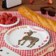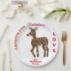 Carrots for Reindeer. Fun family tradition to leave out on Christmas Eve for when Santa comes with his reindeer. Love Family Name in red to personalise. Written in orange and red typography against white background. My cartoon character Super Snow the Blue-eyed Reindeer is a cute white-tailed button buck with white spots, and a red nose in a blue highlighted jingle bell look. He's Santa's newest young reindeer hoping to join his sleigh one day! Fun Christmas keepsake memories for children and their families to share and believe in the magic. Visit my store for Cookies for Santa Plates, and Milk for Santa Mugs and more. When I created this cute whimsical blue-eyed reindeer with a red nose and hints of blue twinkles I asked our very young child what name I should call him and he said Super Snow. I had never heard of that before and said ok we'll call him that. Blue is our favourite colour (my husband''s too) so naturally I was drawn to making my reindeer's eyes blue. Original Cartoon Character and Artwork © 2016 TamiraZDesigns.
