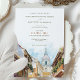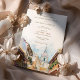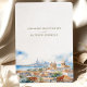 Set the tone for your Cartagena destination wedding with this stunning wedding invitation. The card features a beautiful watercolor painting of Cartagena's iconic skyline, with its historic domes and modern high-rises against a backdrop of the serene Caribbean Sea. The invitation is adorned with shades of ocean blue, sandy beige, and the warm yellows of the Colombian coast. This invitation is a promise of the vibrant and colourful celebration to come.