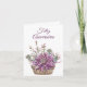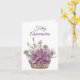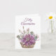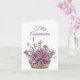 "Feliz Aniversario! " birthday card in Portuguese with an purple flowers. Message inside: " May this special day bring you lots of joy, love and achievements. Happy birthday!" ("Que este dia especial traga muita alegria, amor e realizações para você. Feliz aniversário!")
