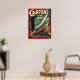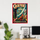 Charles Joseph Carter was a journalist and lawyer whose fascination with magic led him to a new career. Due to considerable competition in U.S., Carter made the wise choice to pursue life as a stage magician abroad, where he became quite famous as "Carter the Great." His most popular acts included the "sawing a woman in half" illusion, making a live elephant disappear, and his dead-awakening "Spirit Cabinet." The poster depicts Carter's "cheating the gallows" act. Accused of witchcraft, the condemned, shrouded magician would vanish, just as he dropped to the end of a hangman's noose.