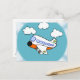 Cartoon Aeroplane in Clouds with Sunburst Postcard