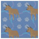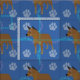 This fun, cute cartoon style Australian Cattle Dog (Heeler) stands looking with a blue background decorated with paw prints and tracks in shades of grey, pink and blue. Design by Diane Blackman. The same design is available with other fun dog images.
