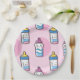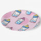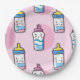 A cute baby bottle cartoon fun paper plate in a lively shade of pink makes a great party plate for the baby shower. Big bottles of milk in bright colours.