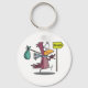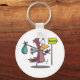 A cartoon style bird with a sack and standing by a sign heading south. This design looks really effective on these Keychain