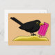 Cartoon Blackbird Eating An Ice Cream Postcard