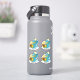 Set of four cut vinyl stickers with an illustration of a cute blue dragon guarding a treasure; fantasy animal cartoon motives for kids; with custom text template for your child's name or custom message