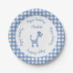 Cartoon blue poodle Posh Paws gingham birthday Paper Plate