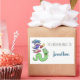 A rectangular customisable bookplate with a happy cartoon bookworm carrying a stack of books.