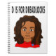 This notebook shows a very cute little boy who loves his dreadlocks and the words D IS FOR DREADLOCKS. Part of the ABCs Collection. Positive image for boys.