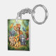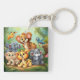 This acrylic keychain is shown with a cartoon animal buddies print.